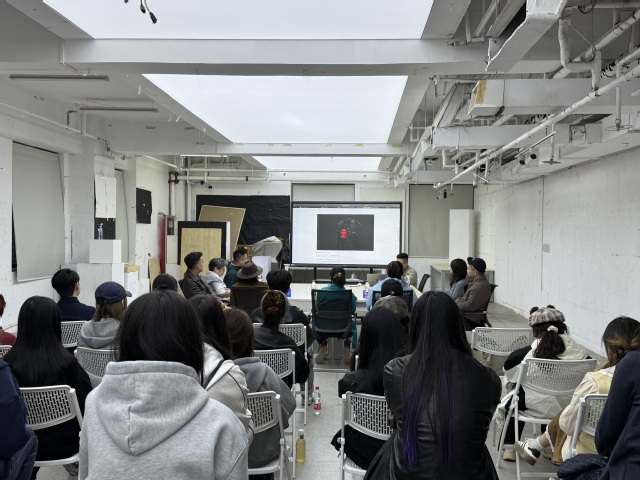 学术分享后,江汉大学美术学院公共艺术系朱缘、杨巍老师分别就江汉大学公共艺术专业的课程体系、教学特色、实践项目开展情况进行了简要阐述,分享了该校在“产教融合、校企合作”等方面的教学经验。最后,李靖康主任对本次交流活动进行总结,详细介绍了西美跨媒体艺术系公共艺术专业的课程设置、“工作室制”教学模式以及学生创作成果,并围绕专业发展趋势、人才培养痛点与江汉大学教师展开深入探讨。现场学生踊跃提问,就专业学习困惑、创作思路拓展、就业发展方向等问题与两校老师互动交流,氛围热烈。