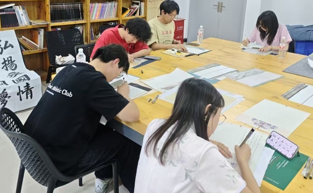 活动一经推出便受到学生热烈响应,原本寂静的宿舍活动室变身“墨香阵地”。课余时间,同学们三三两两聚集于此,铺纸研墨、静心书写,时而交流笔法心得,时而互相点评作品,墨香与欢声笑语交织成独特的宿舍风景线。