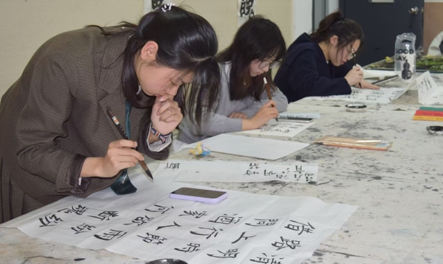 流动书法角精心配备毛笔、宣纸、墨汁、砚台等全套工具,还陈列楷书、行书、隶书等经典碑帖范本与书法入门手册,方便不同基础的学生随时取用练习。学院鼓励学生走进书法角挥毫泼墨,既可以临摹经典、锤炼技法,也能自由创作、抒发心境。