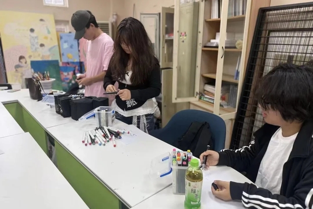 在画室环境优化行动中,志愿者团队依科学分工高效推进:两人逐支筛查画笔状态,筛除废弃笔具后按“类型+规格”分类归置;两人对照书目清单,将美术文献按“学科类别+使用频率”精准码放;剩余成员携专业清洁剂深度清洁画桌,彻底清除颜料污渍与缝隙残渣。全程志愿者反复核验整理细节,让原本杂乱的画室实现“画笔分类有序、书籍排列规整、桌面洁净光滑”的蜕变,为师生打造了适配艺术创作的专业空间。