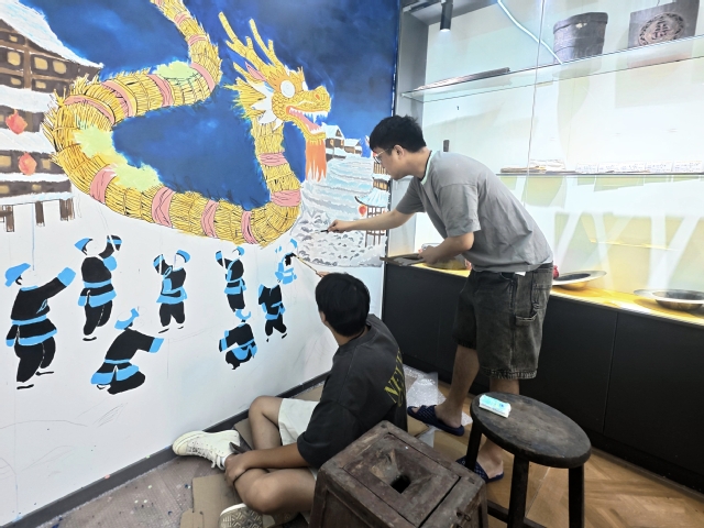 8月26日至28日,团队转战湖北恩施,走进五峰山非遗特色乡村民俗博物馆,围绕“茶”“药”“俗”三大主题开展墙绘创作,让古老的民俗文化在墙面上焕发新生。