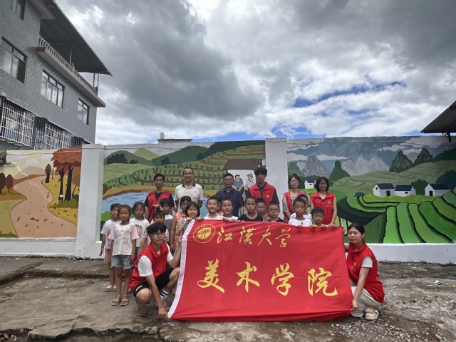 近日,江汉大学美术学院“艺绘乡村筑梦志愿服务团”成功入选2025年湖北省“青春手绘美丽乡村”艺术助力乡村振兴志愿服务项目。暑期,该团队奔赴广西桂林和湖北恩施两地,开展以墙绘为主题的社会实践,大学生们以笔为翼、以墙为媒,在非遗传承与乡村振兴的一线展现出蓬勃的青春力量与责任担当。