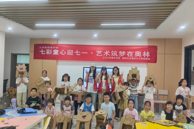 为践行绿色发展理念,响应武汉市城管执法委“青年i分类”专项行动号召,助力城市生态文明建设,江汉大学美术学院青年志愿者协会于假期走进奥林社区,开展“变废为宝,创意焕新生”环保小课堂活动。活动以寓教于乐的艺术创作形式,把环保理念和美育实践相融合,让社区居民尤其是孩子们在创意体验中深化环保认知。