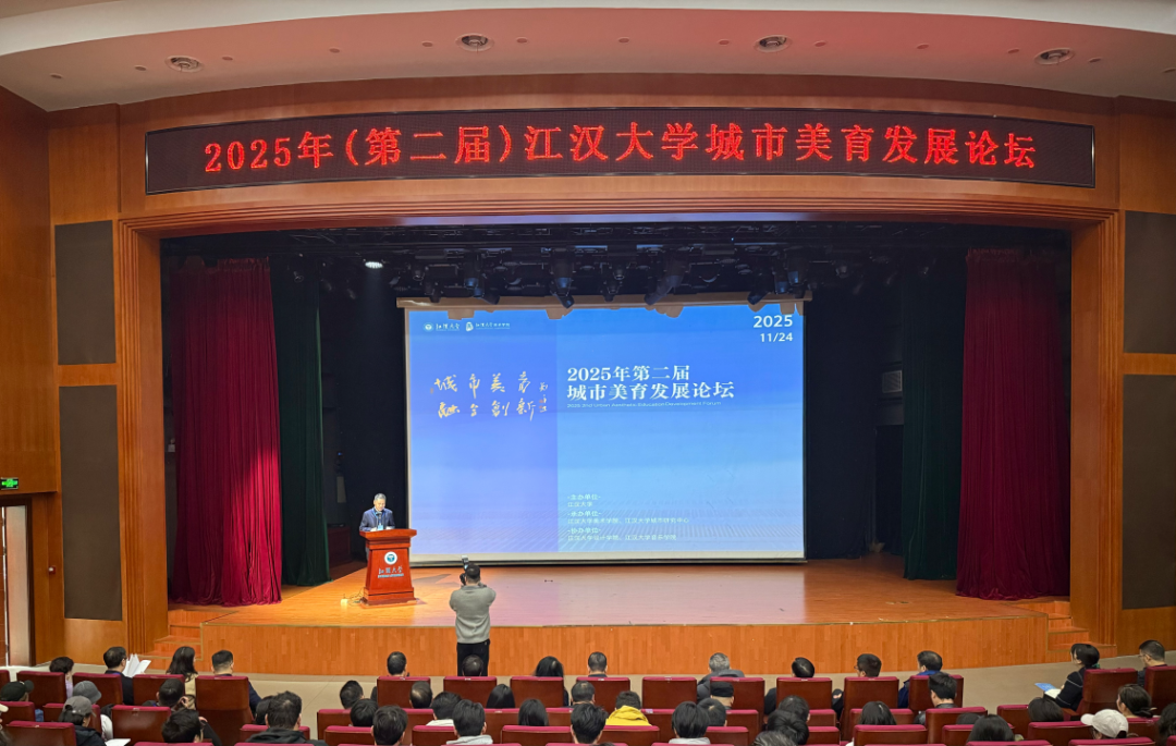 2025年11月24日,由江汉大学主办,江汉大学美术学院、江汉大学城市研究中心承办,设计学院、音乐学院协办的“2025年(第二届)城市美育发展论坛”在江汉大学美术学院举行。论坛以“城市美育:融合与创新”为主题,汇聚全国美育领域专家学者智慧,共同探索美育与城市发展融合路径,以前瞻视野擘画新时代城市美育发展新图景。
